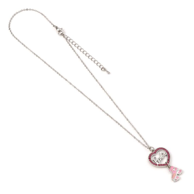 Sparkle and shine while roller skating with Barbie's Crystal Heart and Roller Skate Necklace! Featuring a cut-out name logo surrounded by pink crystals and finished off with a playful roller skate charm, this timeless piece perfectly captures the heartfelt nostalgia of childhood play. With enamel and crystal details, on a silver tone trace chain with 5 cm extender, this necklace from the official jewellery collection for ages 14 and up will be a keepsake for many years!- Zinc alloy/ enamel pendant